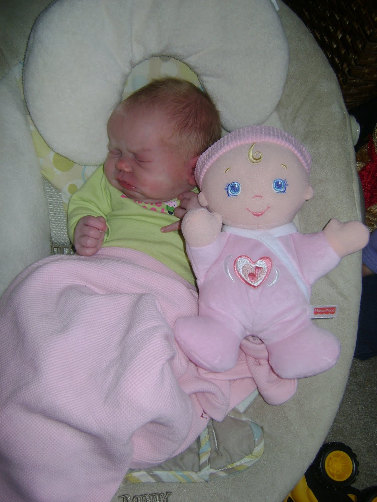 Little Miss Lilah is as sweet as can be! She really is a good baby. She typically only has one fussy period a night. Other than that, she sleeps 3 to 4 hours between feedings. During the day, she eats a lot more often which is fine by me. Yesterday was the first day for just the two of us. It was also her first snow! The house is a lot quieter with Brian at work and the other two at daycare. I definitely needed this time though. It is hectic enough bringing home a newborn with two small children already at home. Adding Christmas to the mix was a bit much. I'm enjoying my bonding time with her.